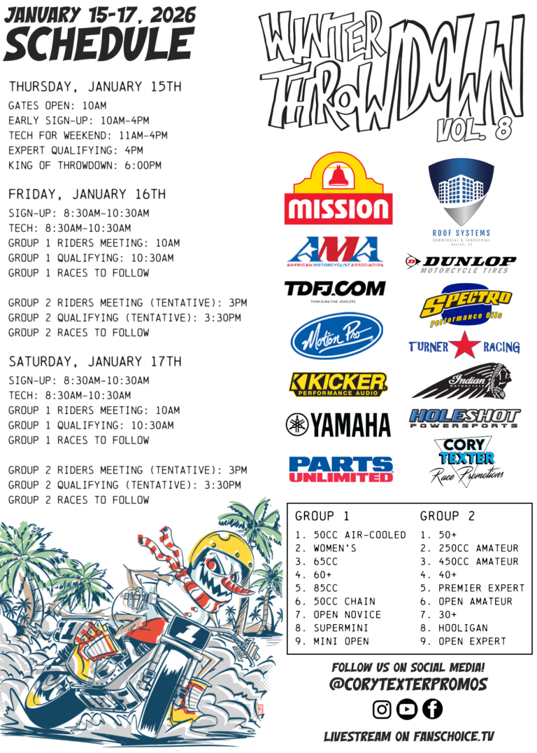 We will have manufacturer contingency at the 2026 Winter Throwdown from Yamaha, Honda, KTM, Husqvarna and Gas Gas!